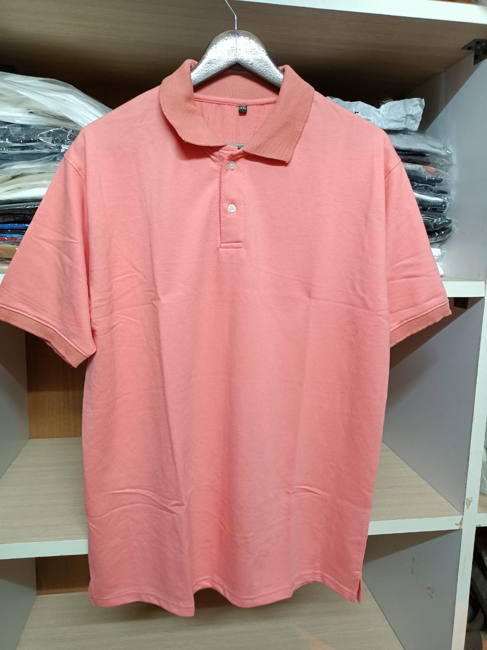 Product Description — Terry Cotton French Terry Polo T-Shirt (240 GSM) – Pink, XXL